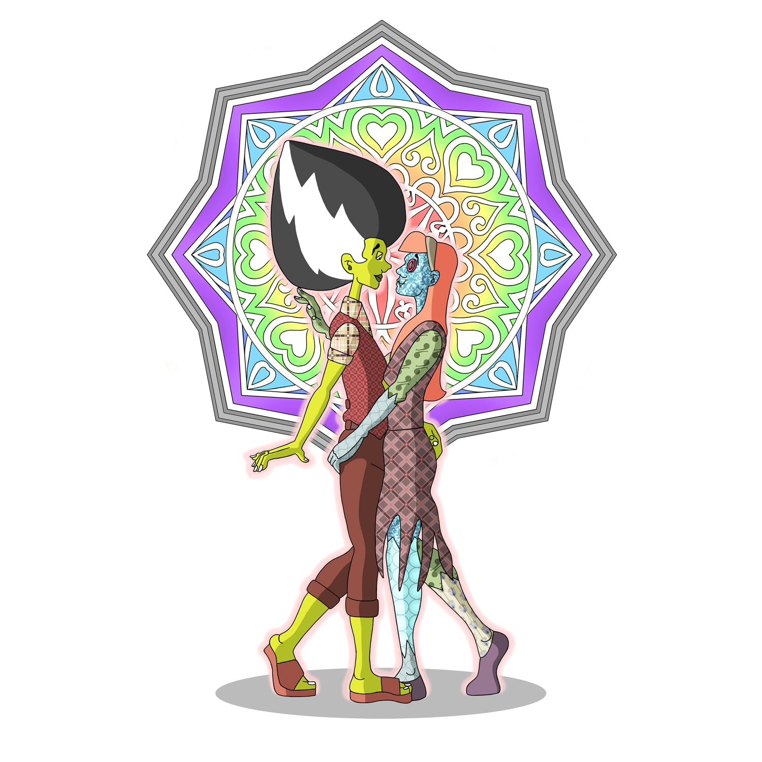 An original art print featuring Justin Case and the Closet Monster characters Bethanie and Abigail.